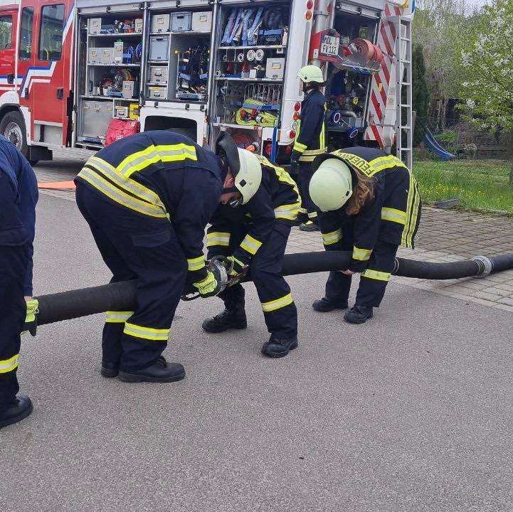 Dabei lernten sie den Aufbau von Feuerlöschkreiselpumpen, das Ansaugen von Wasser aus offenen Gewässern 🌊, das Bedienen von fest verbauten Pumpen 🚰 und vieles mehr.