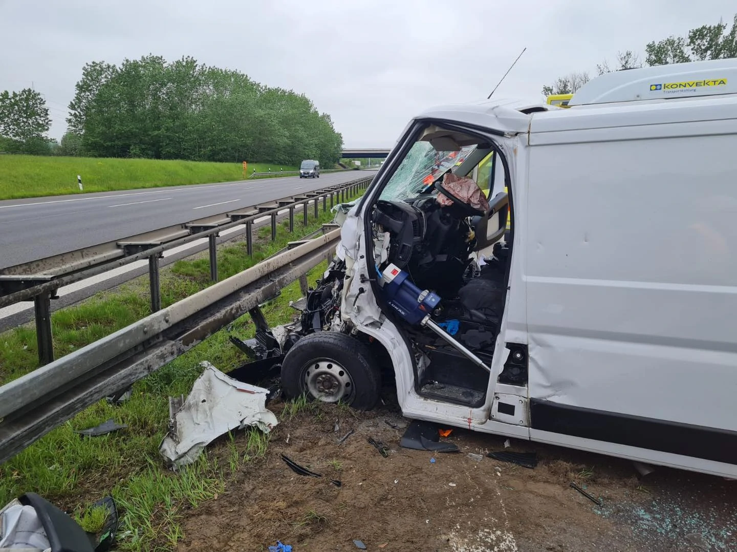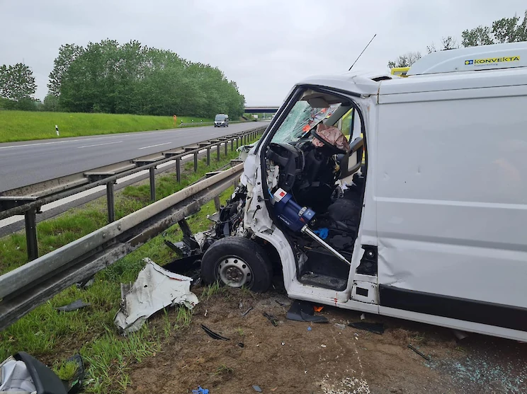 Vor Ort stellten die Kameraden fest, dass ein Transporterfahrer in seinem Fahrzeug verunfallt und eingeklemmt war, der Fahrer benötigte dringend medizinisch Hilfe.