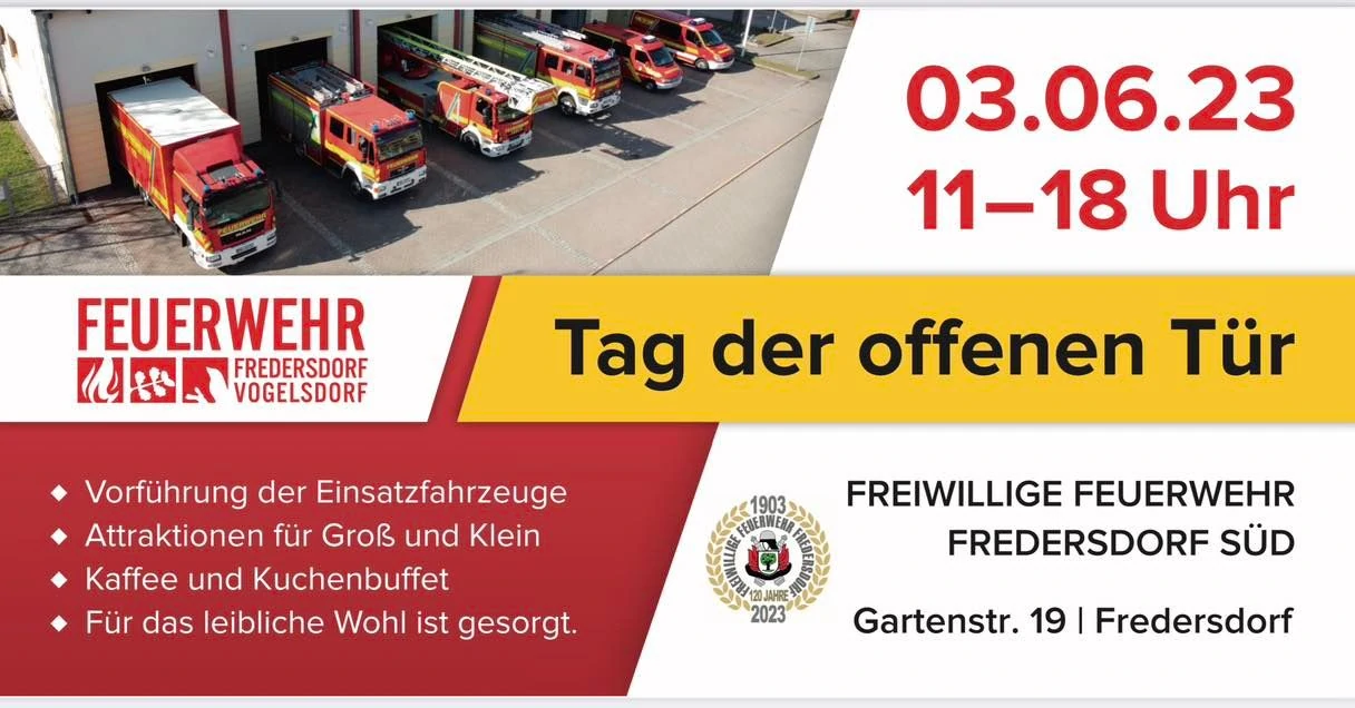 Am Samstag den 03.06.2023 öffnet der Löschzug Fredersdorf-Süd von 11 bis 18 Uhr seine Tore.