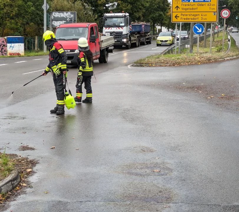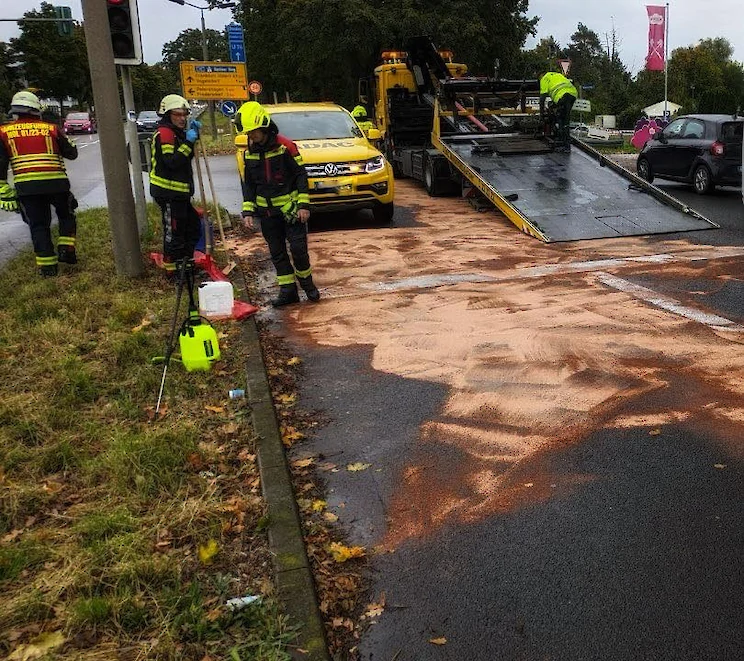 Wir wurden zu einem Verkehrsunfall ohne Personenschaden alarmiert. Wir haben die Betriebsstoffe mit Bindemittel aufgenommen. Anschließend fuhren wir wieder ins Gerätehaus.