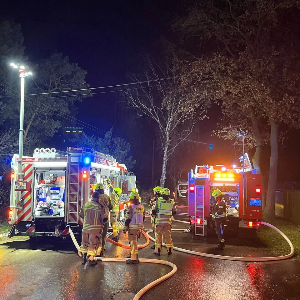 #4 🔥Garagenbrand - Die Kameraden aus Petershagen/Eggersdorf forderten unsere Drehleiter und Atemschutzgeräteträger nach. Wir wurden vor Ort nicht mehr benötigt und konnten wieder einrücken.
