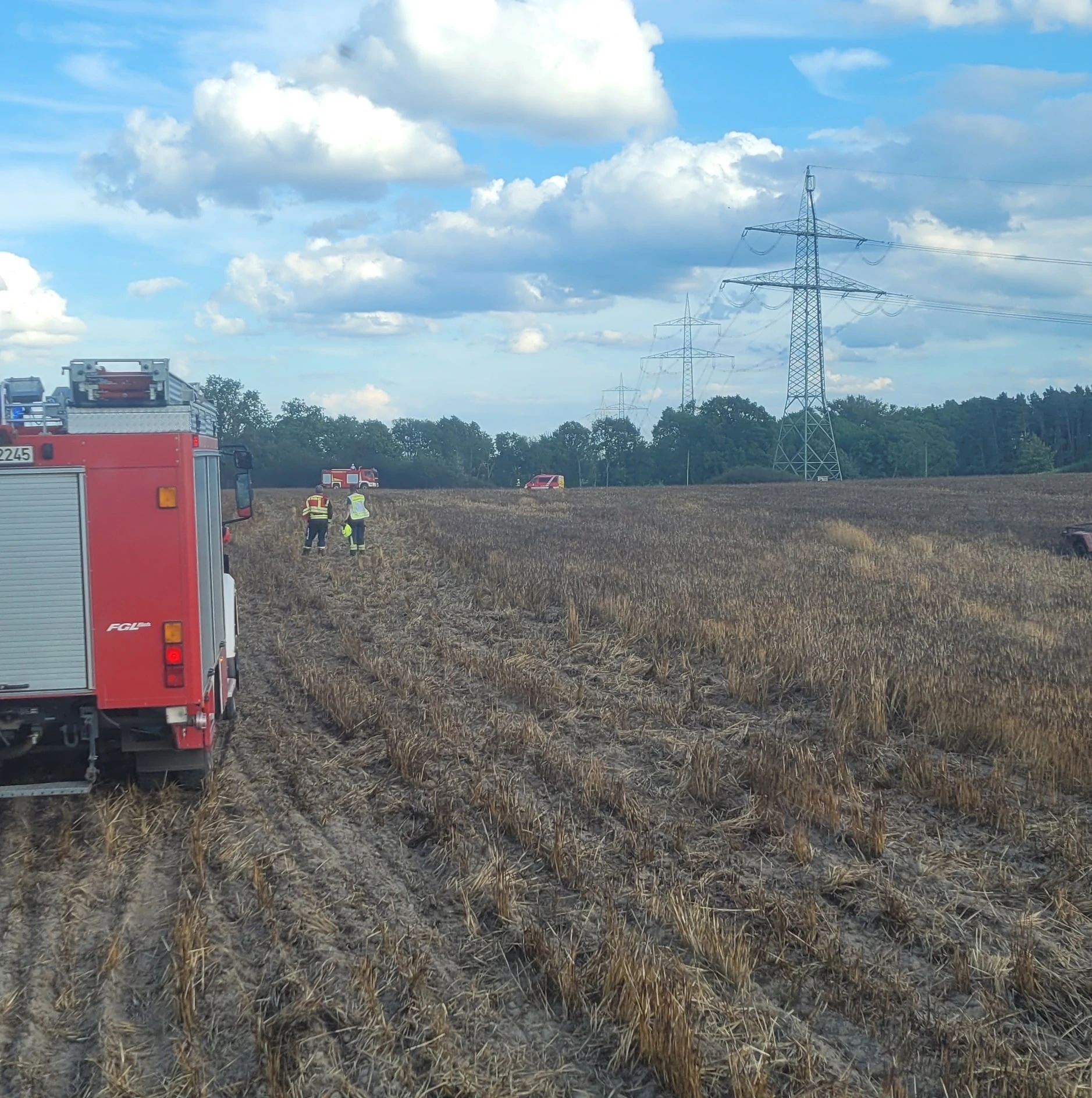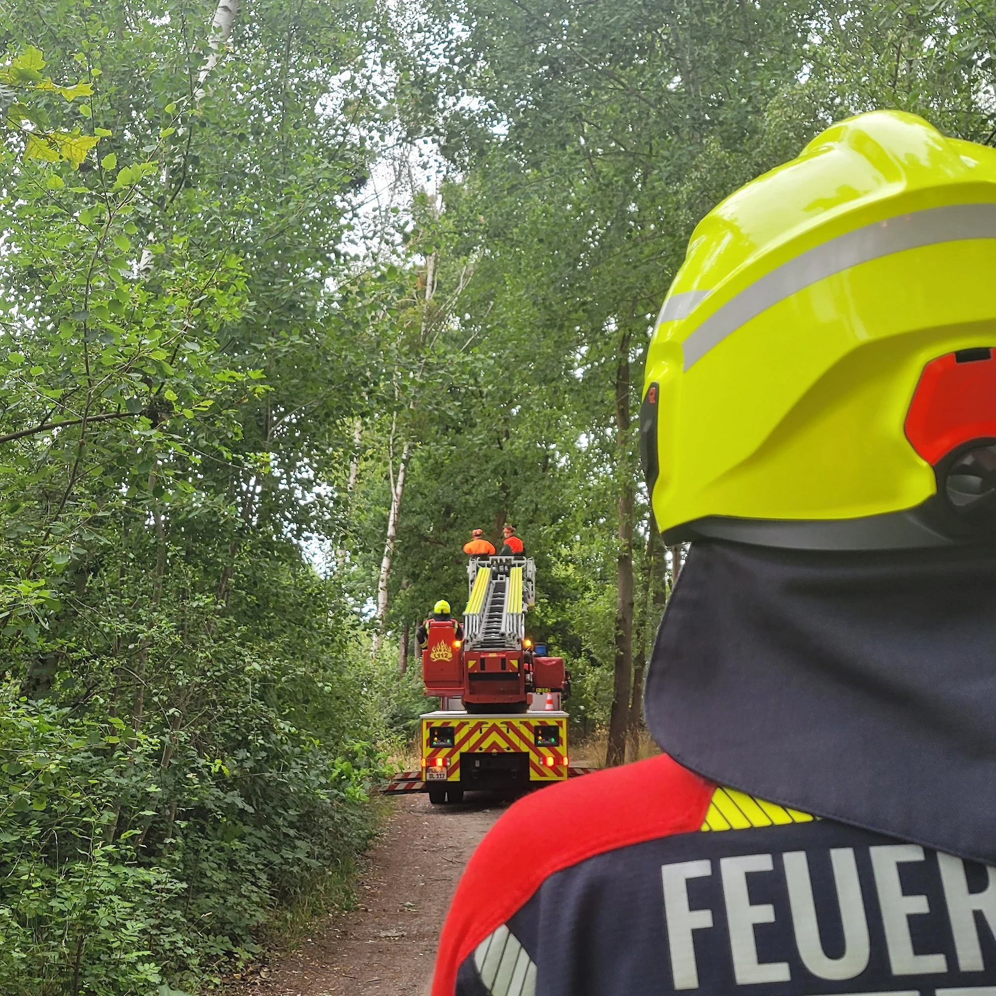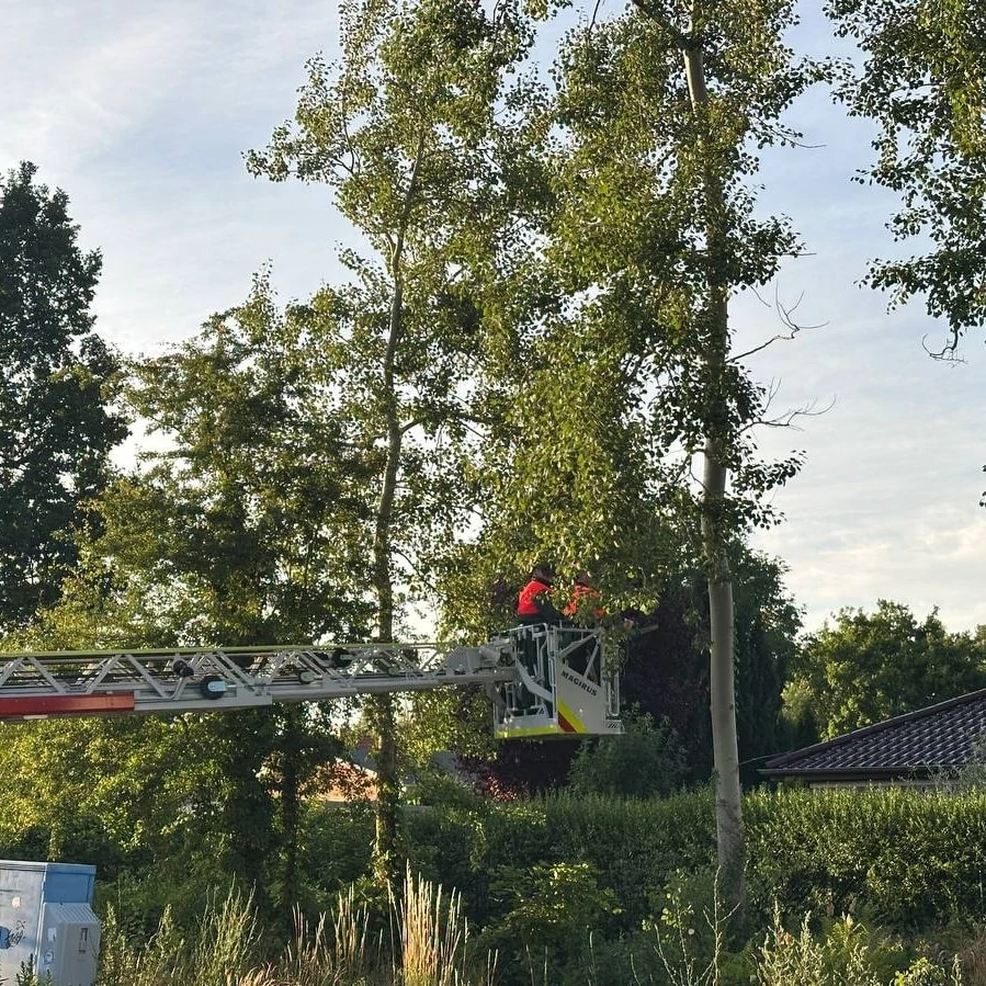 Gegen Mittag hat sich ein LKW in einer Telefonleitung verfangen und konnte seine Fahrt nicht fortsetzen. Wir hielten die Telefonleitung mit dem Einreißhaken hoch, damit der LKW seine Fahrt fortsetzen konnte, informierten den Telefonversorger und sicherten die Leitung.