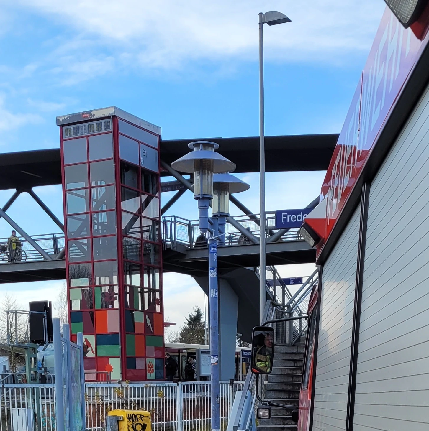 Der Aufzug am Bahnhof ist mit 5 Insassen stecken geblieben. Wir befreiten die Personen und nahmen den Aufzug außer Betrieb.