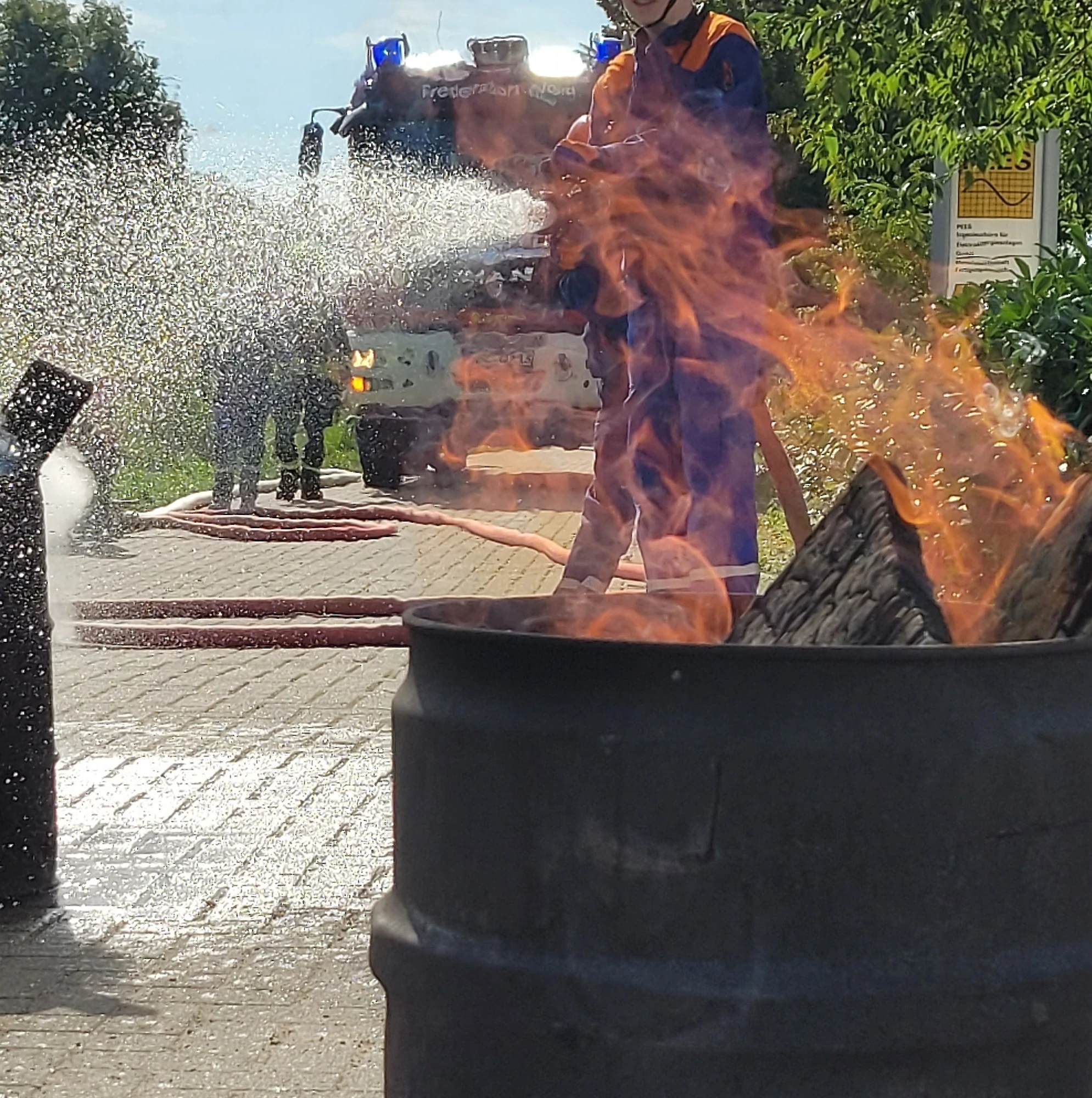 Ein Highlight an diesem Wochenende war für die Kameradinnen und Kameraden unser simulierter Gebäudebrand am Bauhof, wo die Kinder ein echtes Feuer löschen durften.