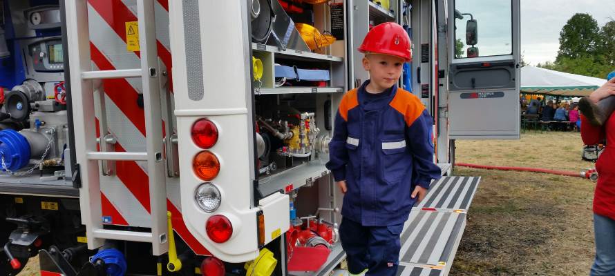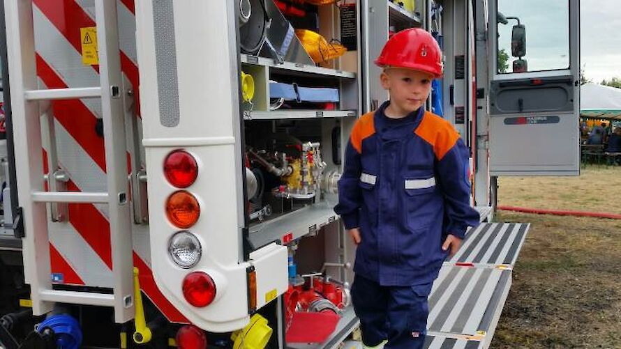 Besonders gefreut haben wir uns über das außergewöhnlich große Interesse der Besucher an der Technik und der Arbeit der Feuerwehr. Ein Highlight war sicherlich, wie unser jüngster Kamerad den staunenden Zuschauern von seiner Feuerwehr berichtete. Mit seinen 6 Jahren erklärte der kleine Tim ganz routiniert, wie die Ausrüstung funktioniert und was man alles damit machen kann.