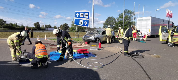Wie wichtig diese wiederkehrenden Ausbildungen sind, hat sich wenige Tage später bei einem Verkehrsunfall auf der Bundesautobahn 10 gezeigt. Hier hatte sich ein mit zwei Personen besetzter PKW überschlagen. Die Verunfallten mussten von uns, in enger Abstimmung mit dem Rettungsdienst, aus ihrem Fahrzeug befreit werden. Die Geretteten konnten anschließend in ein Krankenhaus verbracht werden. Der Einsatz verlief, auch Dank unserer Ausbildung, professionell, effizient und patientenschonend. Wir fühlen uns auch für zukünftige Einsätze gut gerüstet.