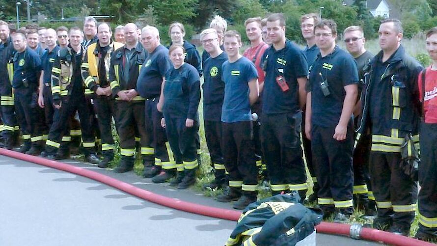 Nach einer kurzen, aber einschlägigen Theorieeinheit zur Auffrischung des Wissens und einem deftigen gemeinsamen Frühstück folgten wir diesem Stichwort. Zielsetzung war das gemeinsame Zusammenwirken unsere drei Löschzüge bei der Flächenbrandbekämpfung und dem Schutz der Wohnbebauung. Um die Übung etwas spannender zu gestalten kämpften unsere Übenden mit einer (simulierten) schlechten Wasserversorgung vor Ort.