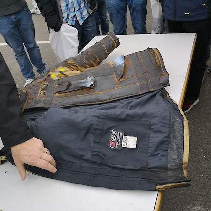 Apropos Überzeugen: Selten haben wir uns eine Empfehlung für die Gemeinde zur Beschaffung so schwergemacht. Gerade weil es sich um einen Generationswechsel handeln soll und ein großer Teil unserer „alten“ Schutzkleidung sofort erneuert werden muss, waren wir auf der Suche nach einem Produkt, welches den größten Teil unserer Anforderungen gerecht wird und uns allumfänglich überzeugt. Um diese Anforderung klar bestimmen und am Ende beschreiben zu können, haben wir insgesamt, in einem Gremium von (bis zu) 11 Personen, 180 Stunden ehrenamtliche Arbeit aufgewendet. Es wurden Messen besucht, Hersteller eingeladen und Trageversuche unter ganz verschiedenen Bedingungen durchgeführt. Damit waren wir am Ende ganz sicher, was eine neue Schutzkleidung für uns leisten muss.